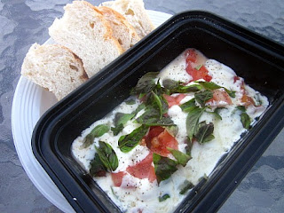 This dip is GREAT for when you need something thrown together super fast, or when you're too lazy to do much else besides combine 3 ingredients :)  The addition of fresh garden basil is perfect...try not to use the dried stuff if you can help it.